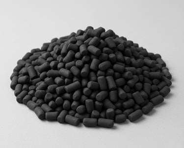 Extruded cylindrical pellets offering uniform density and superior mechanical strength. Perfect for gas-phase filtration, solvent recovery, and VOC removal combining high efficiency with minimal pressure drop.
